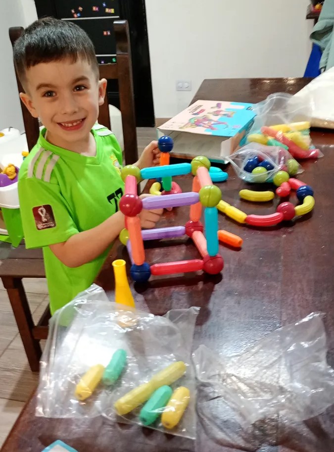 Lo compré de regalo para mi hijo y fue un golazo. Llegó rapidísimo y desde que lo abrió no dejó de jugar. Se divierte muchisimo construyendo. Los imanes son seguros y el tamaño es ideal para chicos. Un regalo que realmente vale la pena