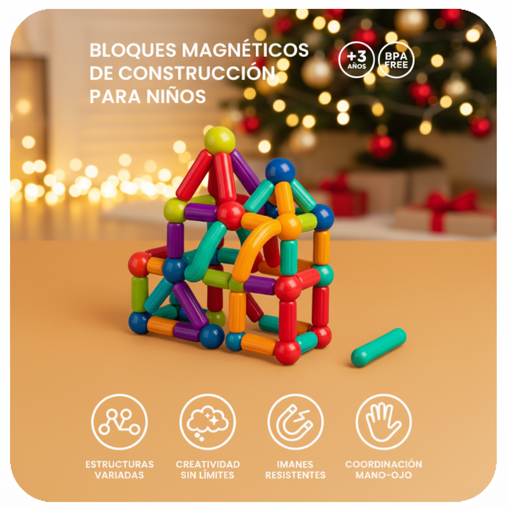 Con Magnetic Sticks, tus hijos pueden construir torres, casas y figuras con piezas magnéticas seguras, desarrollando creatividad, imaginación y habilidades para resolver problemas mientras se divierte sin límites.